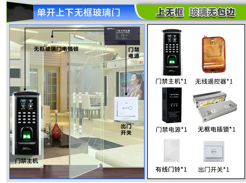 【上下无框】单开玻璃门 (内开)需要无框玻璃门电插锁