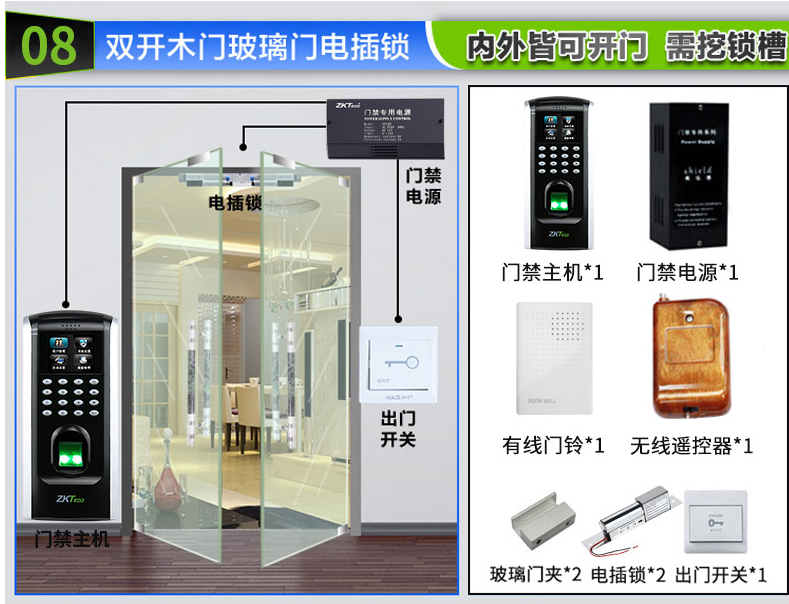【内外皆可开】单开有框玻璃门是需要挖槽 安装电插锁的。