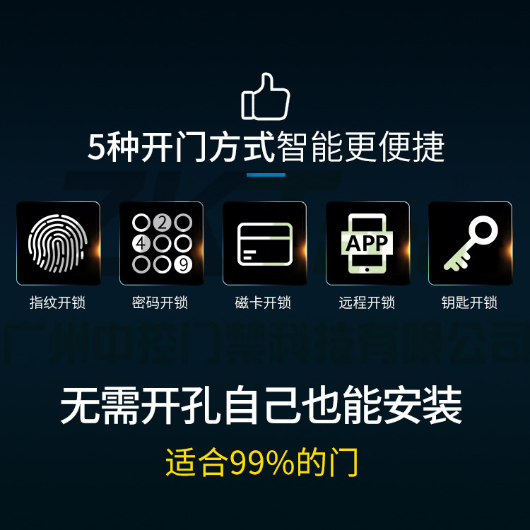 无需开孔指纹门锁 家用不锈钢密码锁
